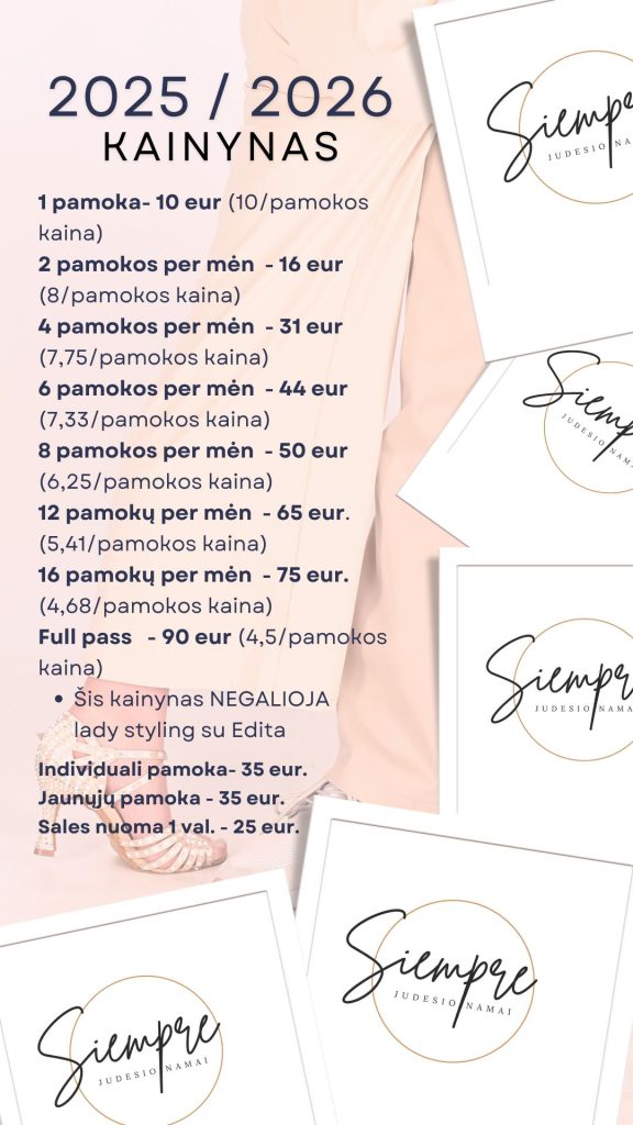 „Siempre Judesio Namai“ – tai vieta, kur šokis tampa gyvenimo dalimi. Panevėžio širdyje įsikūrusi šokių studija kviečia visus – nuo pradedančiųjų iki pažengusiųjų – atrasti judesio džiaugsmą, pasitikėjimą savimi ir bendrystę.